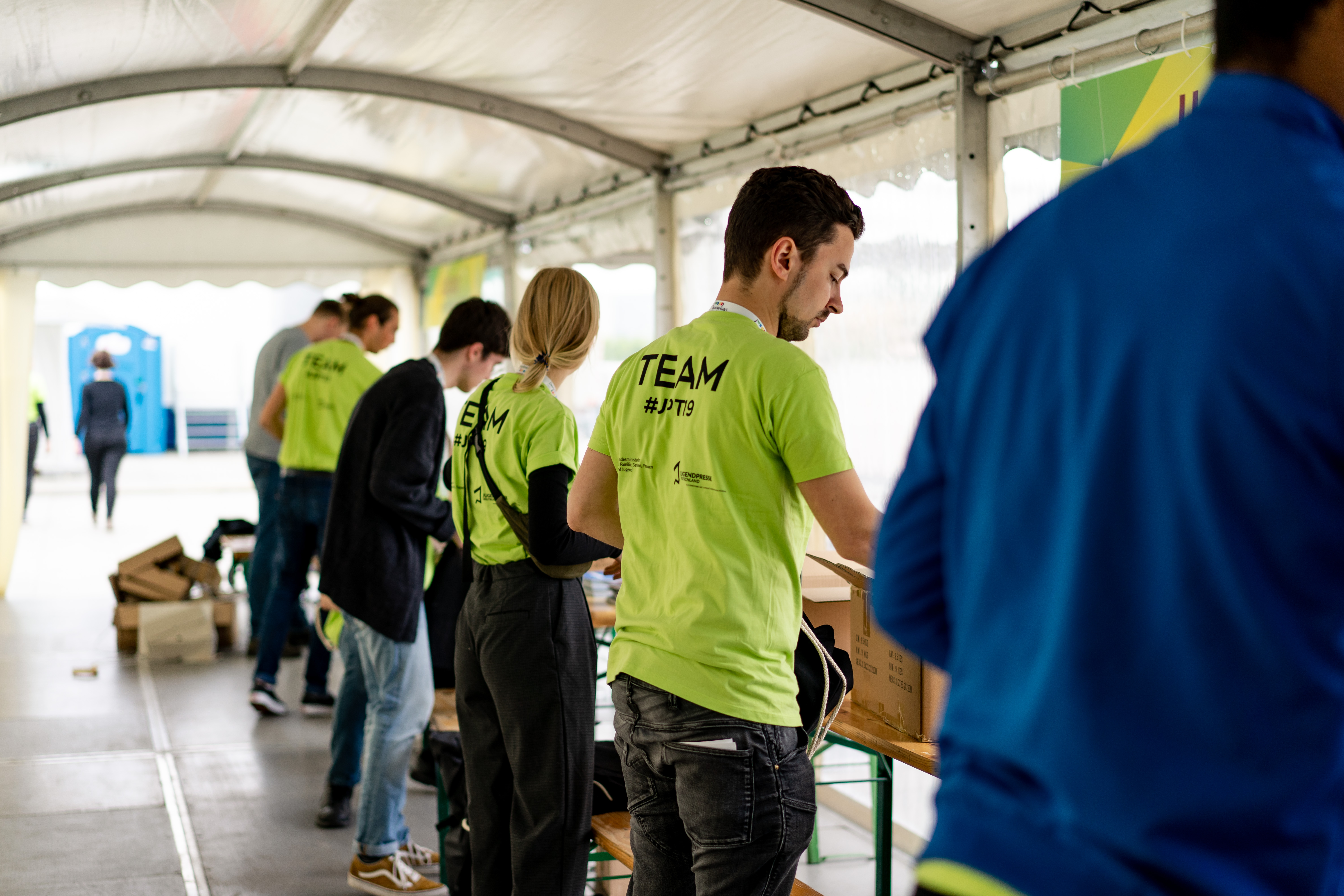 Die Teamenden der Jugendpolitiktage 2019 bereiten sich am Donnerstag, dem 9. Mai 2019, auf die Ankunft der Teilnehmenden in Berlin vor.