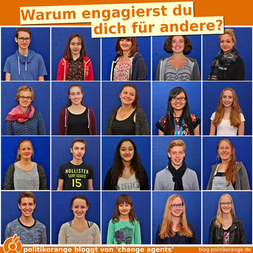 politikorange war bei dem Seminar der ‚change agents‘ dabei und hat die engagierten Schüler*innen gefragt, warum sie sich in ihren Projekten für andere Menschen einsetzen. Klickt euch durch ihre Antworten – vielleicht ist ja auch eine für euch dabei!